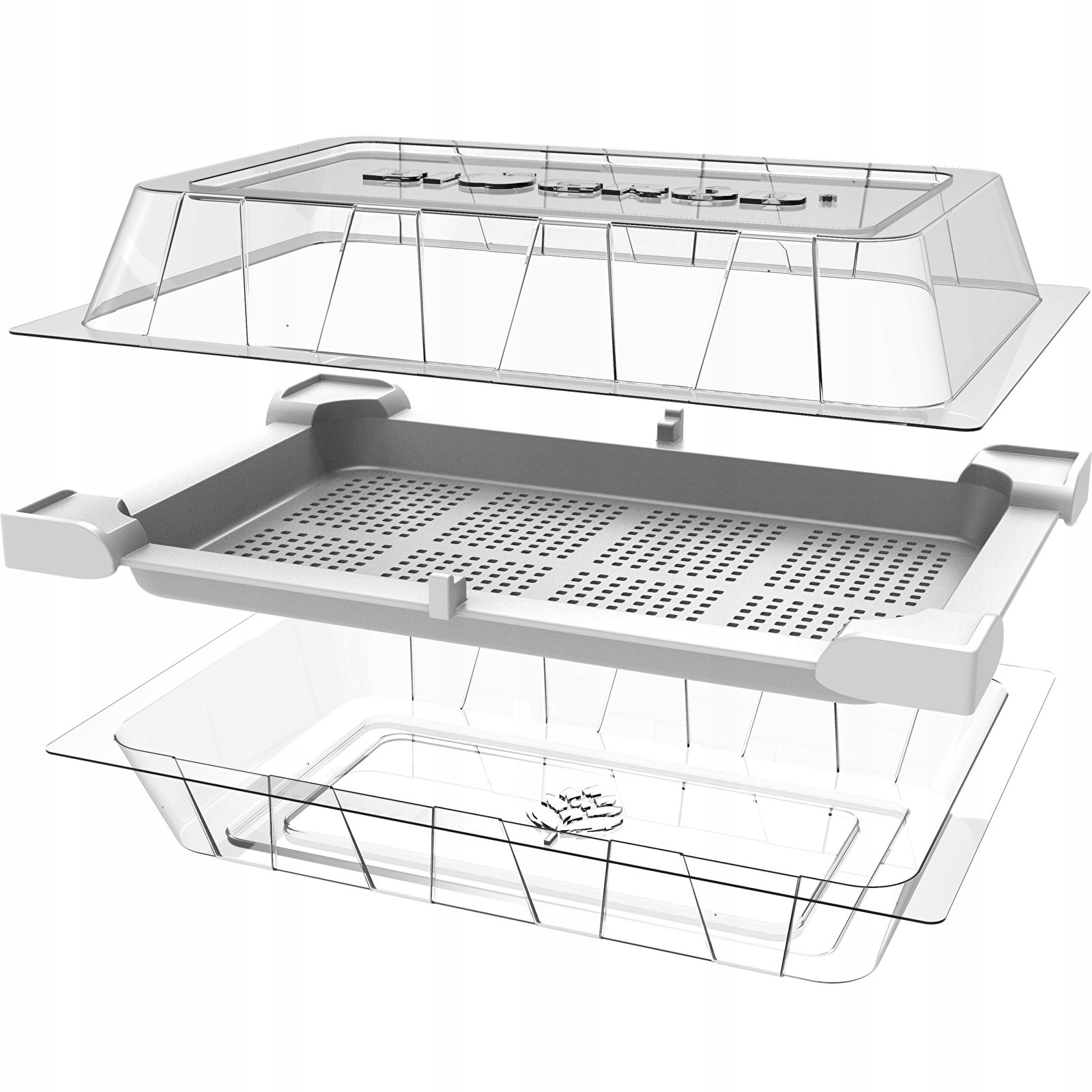 Kiełkownice można ustawiać piętrowo jedna na drugiejDopóki kiełki mieszczą się pod przykrywką, kiełkownice można stabilnie ustawiać jedną na drugiej - ułatwiają to specjalnie wyprofilowane tacki dolne oraz przykrywki. Po zdjęciu przykrywki kiełkownice muszą być ustawiane obok siebie. | |