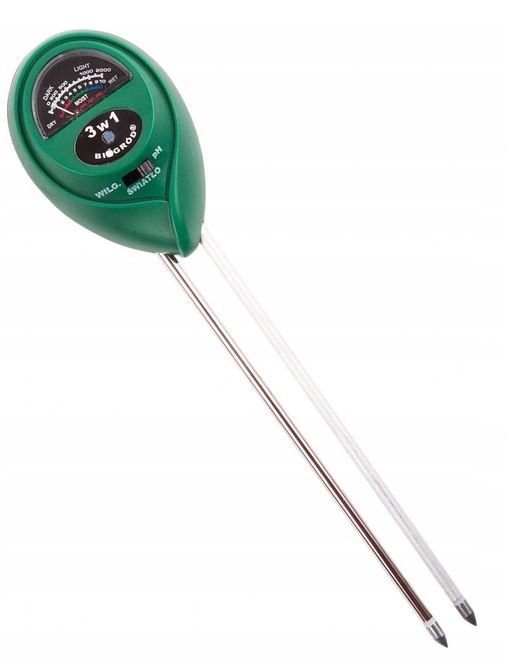Urządzenie pomagające poznanie w szybki i prosty sposób pomiaru pH, wilgotności oraz nasłonecznienia gleby! Niezbędnik w hodowli roślin i uprawie trawników!
